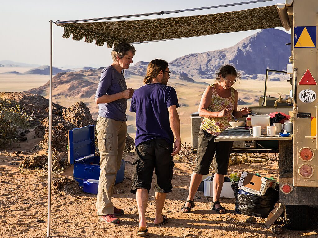 Buschmann Safaris ist von Anfang an immer ein Familienunternehmen geblieben. Auf dem Hof gibt es mit Auguste und Aikali nur zwei weitere Mitarbeiter die sich um Sauberkeit und Technik der Ausrüstung kümmern.